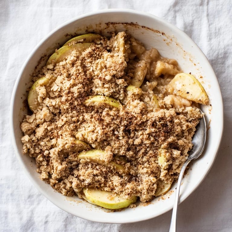 Save The smell of cinnamon and baking apples still takes me back to my tiny first apartment, where the oven door never quite closed properly but somehow everything still turned out delicious. I made this crumble on a rainy Sunday when friends dropped by unexpectedly, armed with nothing but some slightly wrinkled apples from the fruit bowl and basic pantry staples. Something about that crumble topping going golden brown made the whole place feel like home, even with mismatched mugs and a wobbly kitchen table. Now it is my go-to when I need comfort without the fuss of a proper pie crust.
