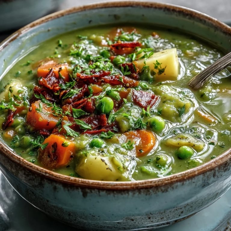 Save There's something about the smell of split peas simmering on the stove that makes a kitchen feel like home, even on the coldest afternoons when you're not sure what else to do with yourself. My grandmother used to make this soup without looking at a recipe, just tossing things into a pot while humming along to whatever was on the radio. Years later, I realized she'd been teaching me the rhythm of cooking without ever saying a word—how vegetables soften, how flavors build, how patience turns simple ingredients into something you want to wrap your hands around. This version honors that approach while letting you discover your own kitchen moments along the way.