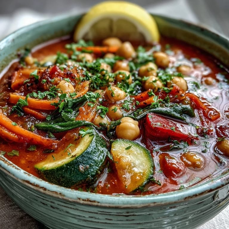Save There's something wonderfully grounding about making a pot of chickpea stew on a quiet afternoon, the kind of cooking that doesn't demand your full attention but rewards it anyway. I discovered this particular version while trying to use up a handful of vegetables that were reaching their prime in my crisper drawer, and somehow it became the thing I crave when I need to feel genuinely nourished. The spices bloom in the hot oil with this almost meditative quality, filling your kitchen with warmth before you've even added a single vegetable. It's the sort of dish that tastes better the next day, if you can resist eating it all immediately.