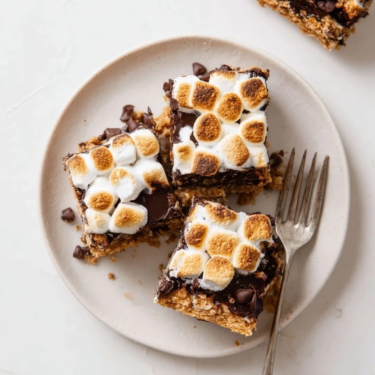 Save Last summer my neighbor texted me at 9 PM asking if I had any chocolate in the pantry. Her kids were begging for s'mores but nobody felt like building a fire in the backyard. We ended up melting chocolate bars on graham crackers in her oven with marshmallows on top, standing around the kitchen island while the marshmallows turned golden and bubbly. The kids went quiet for exactly seven minutes. That night I started thinking about how to capture that magic in bar form, something you could pack for a picnic or bring to a potluck without needing a campfire.